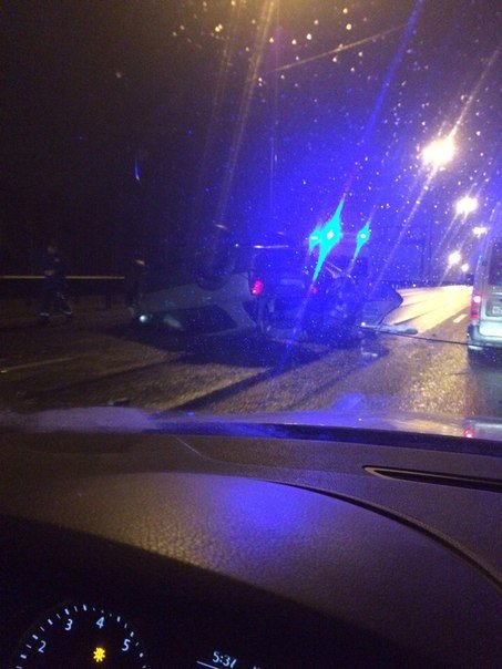 «Жёсткий замес на внешней стороне КАД , не доезжая 400м до съезда на Колтуши. Старый мерседес "очкарик", и нечто похожее на "Сандеро", мерседес в смятку, Сандеро на крыше, насчёт пострадавших не понятно, мчс, реанимация и две скорые на месте».