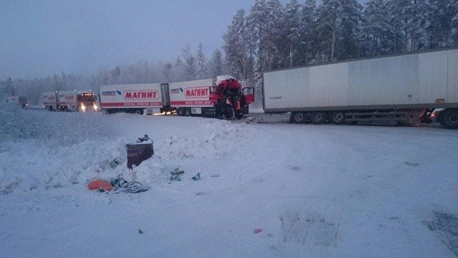 Смертельная авария с участием большегрузов произошла сегодня, 22 декабря, примерно в 4:30 на 475 километре трассы «Тюмень – Ханты-Мансийск» в Уватском районе.