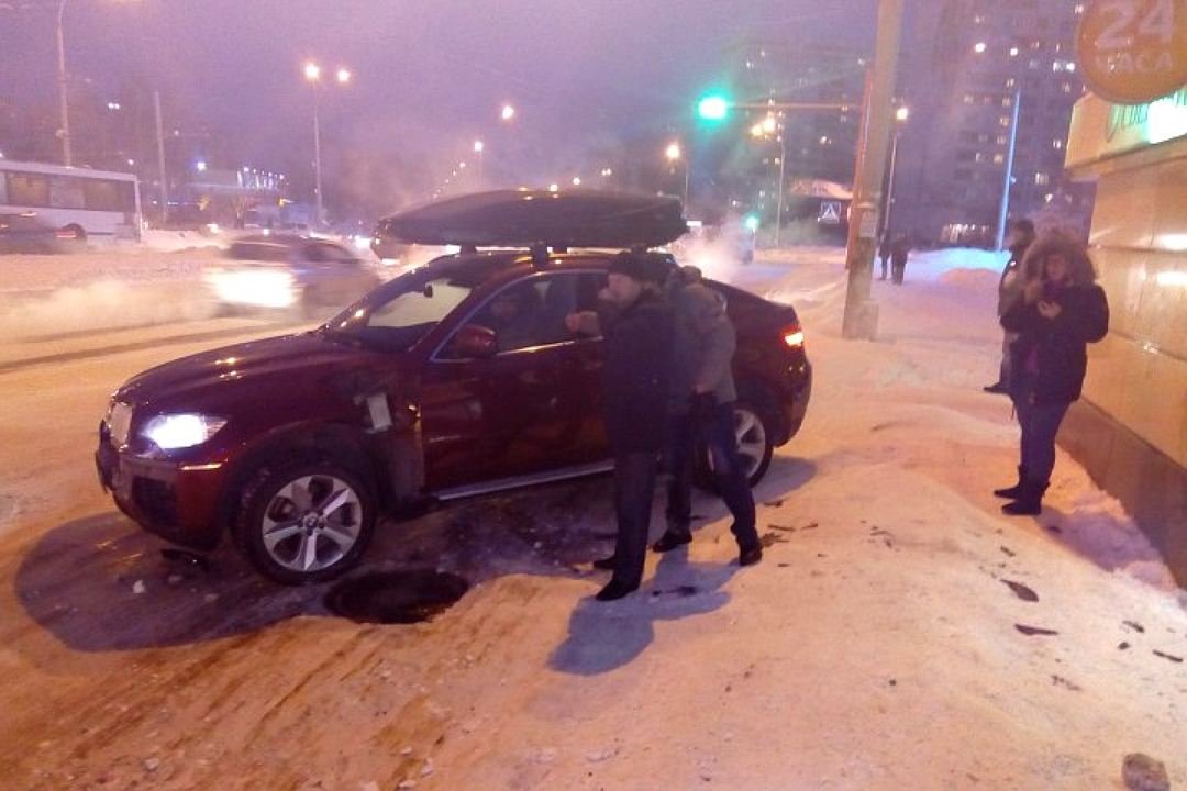 По предварительным данным, водитель автомобиля BMW X6 не справился с управлением и влетел на остановку общественного транспорта.