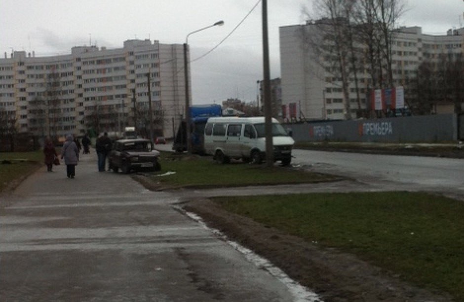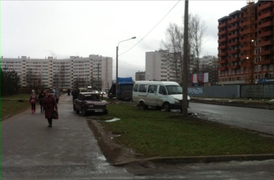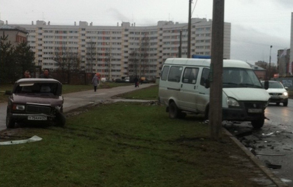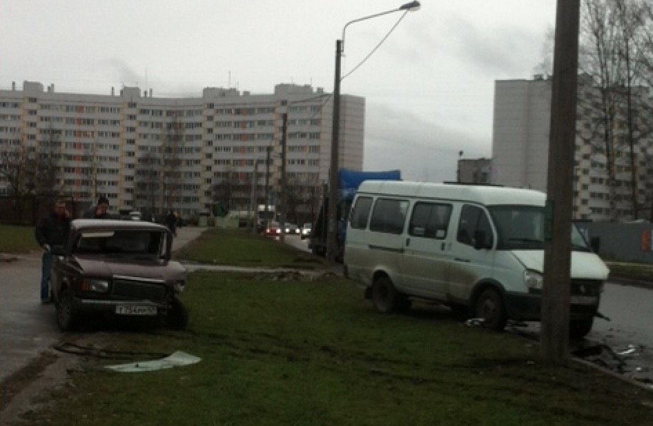 Маршрутка и ВАЗ классически-квадратного семейства сильно столкнулись на улице Тамбасова в Петербурге