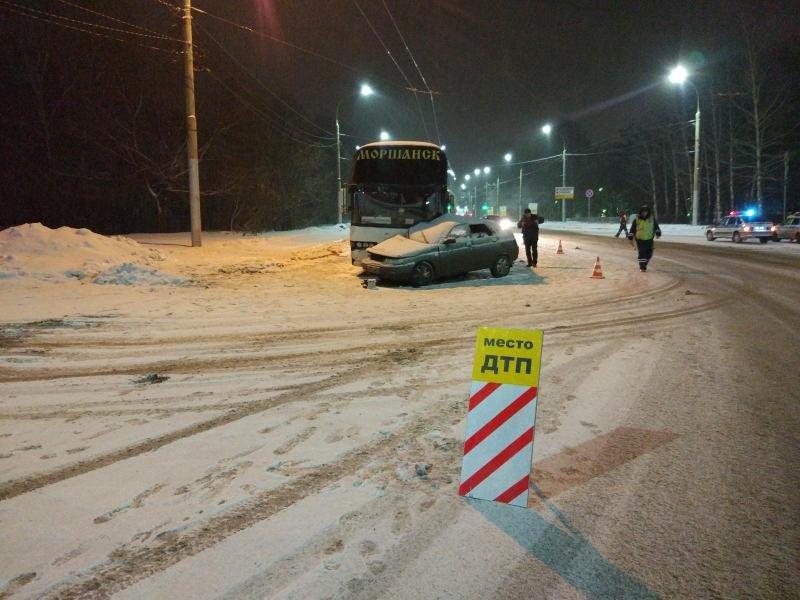 Смертельная авария произошла в ночь на 24 декабря в 1:45 у дома №10 по улице Спортивной в Рязани. При столкновении автобуса и легковушки погибла женщина.