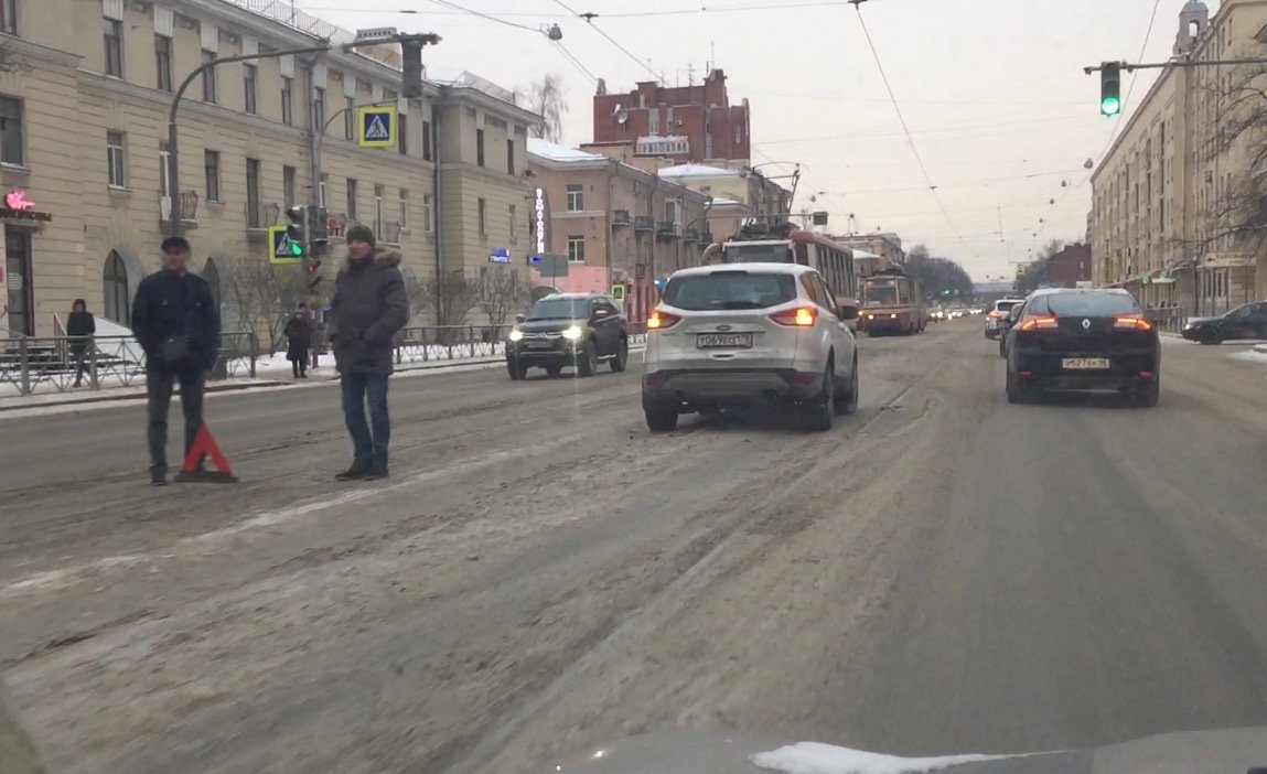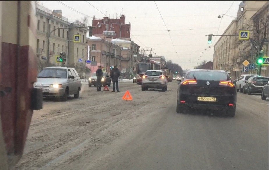 Очередное ДТП на трамвайных рельсах на проспекте Энгельса с участием Ford Kuga