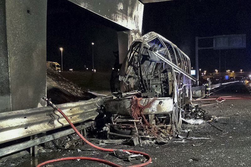 На выезде с автострады автобус врезался в пилон моста и загорелся. В результате аварии 16 человек погибли, еще 36 пострадали.