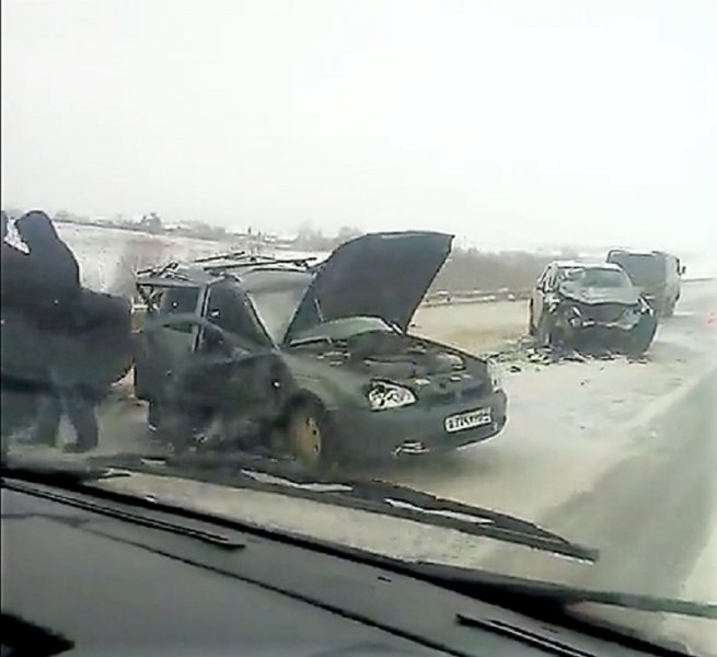 По предварительным данным, водитель автомобиля «Лада Приора» пытался совершить обгон, но не успел и врезался в Mazda CX5. Следом в них влетел Ford.