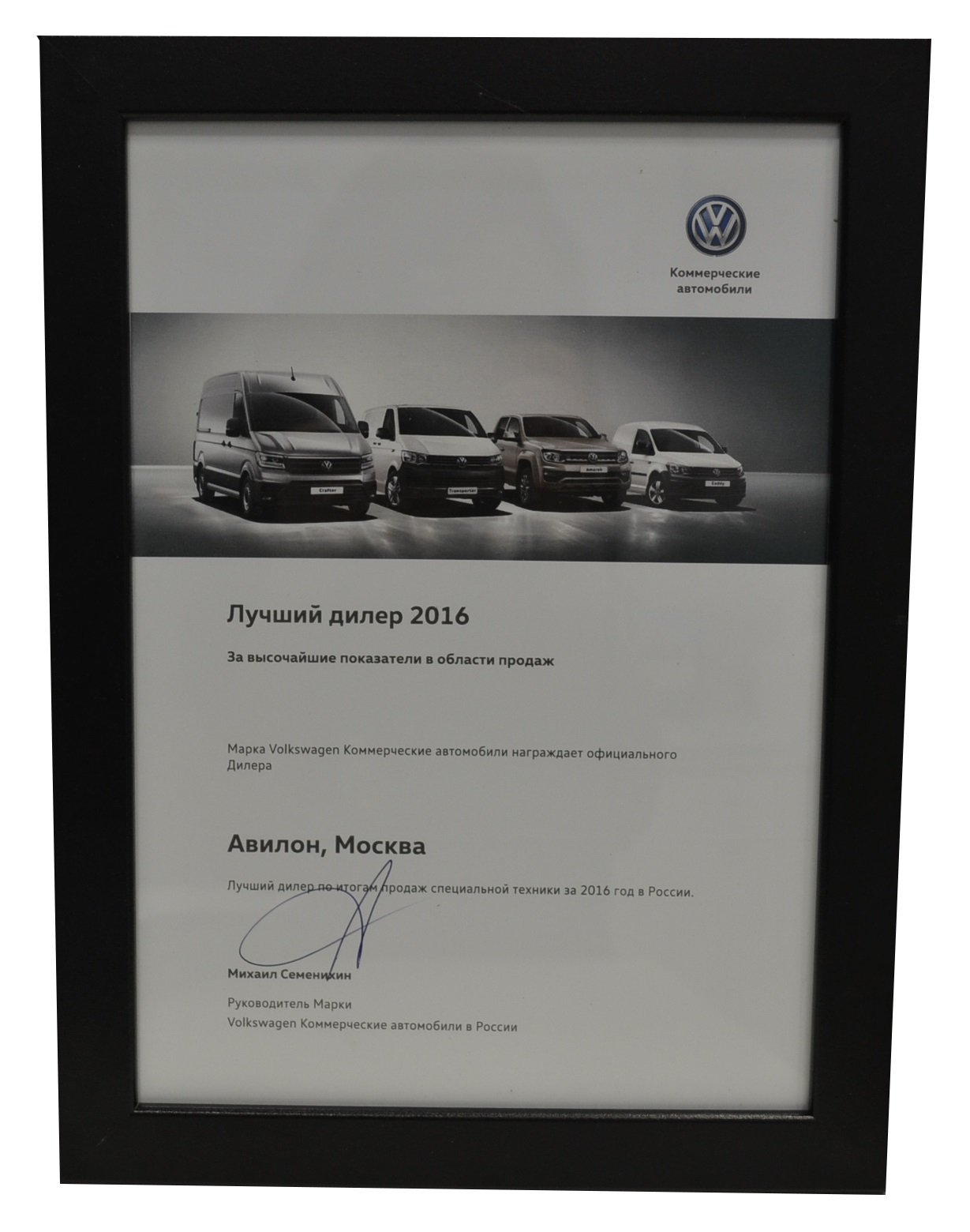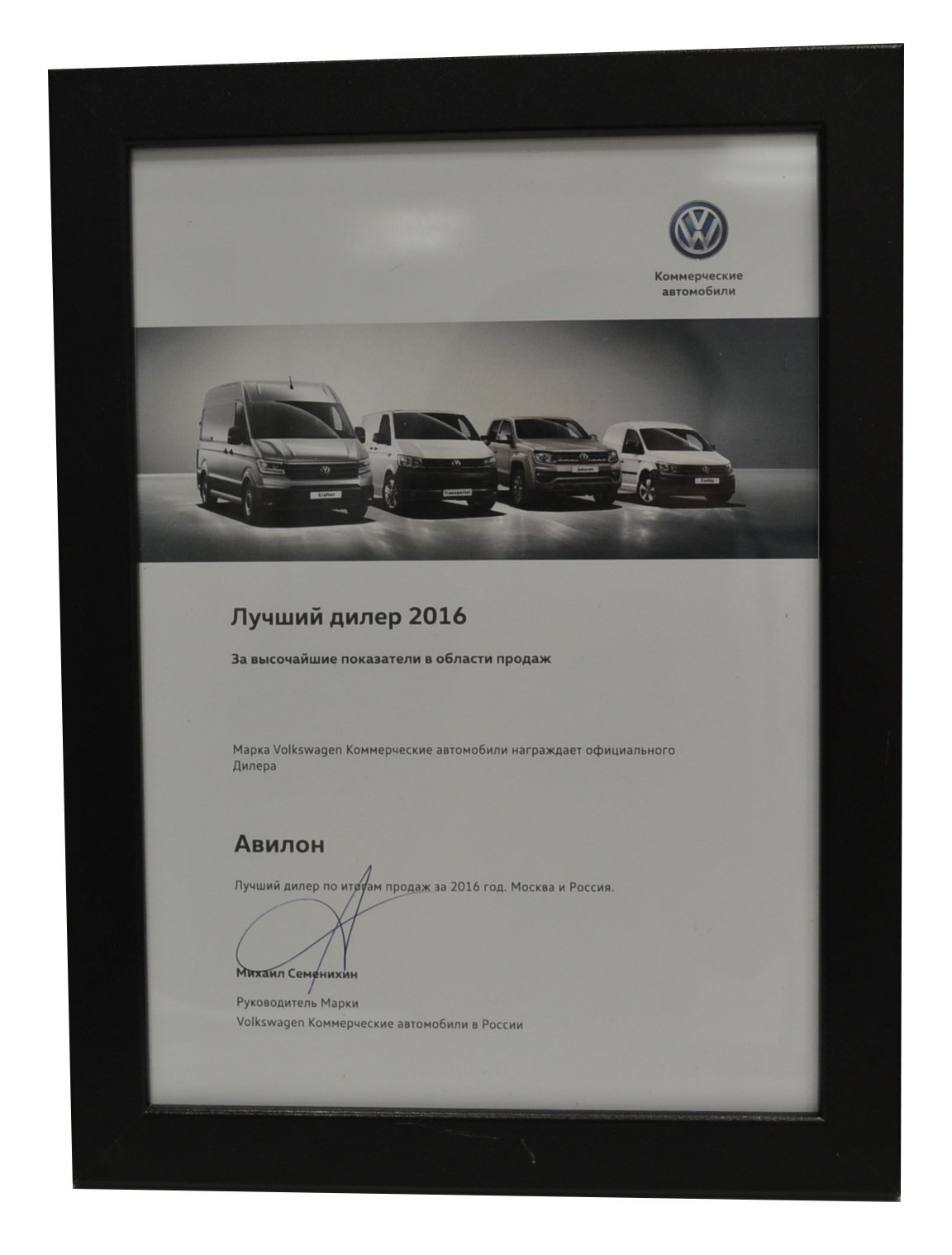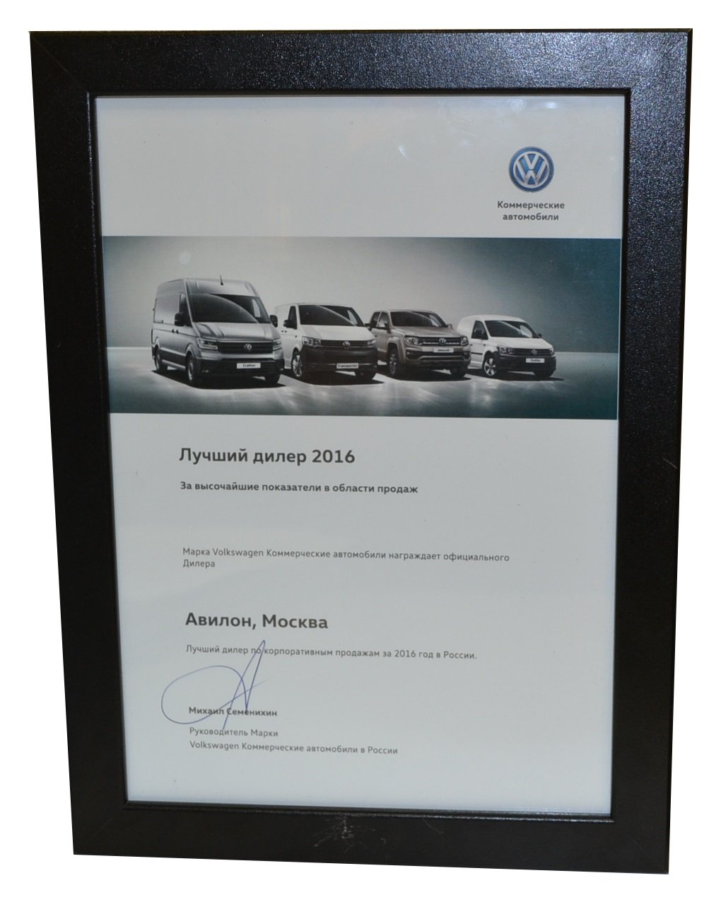 В 2016 году АВИЛОН не только увеличил долю продаж на падающем рынке коммерческих автомобилей, но и пятый год подряд сохранил почетное звание «Лучшего дилера» марки Volkswagen Коммерческие автомобили.