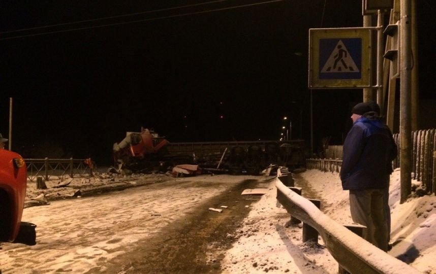 В Ленобласти перевернувшаяся фура с балками придавила легковушку с людьми