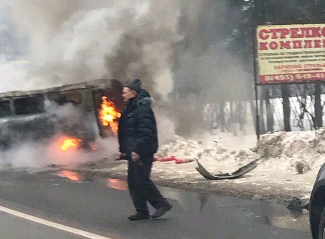 По предварительным данным, произошло столкновение праворульной машины Toyota и УАЗ-452. После удара отечественный автомобиль загорелся.