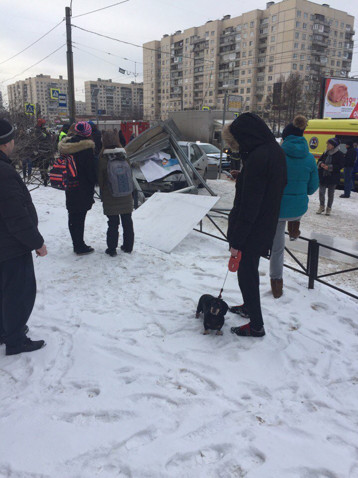 Авария произошла днем 10 февраля Богатырском проспекте в Санкт-Петербурге. Автомобиль врезался в остановку.