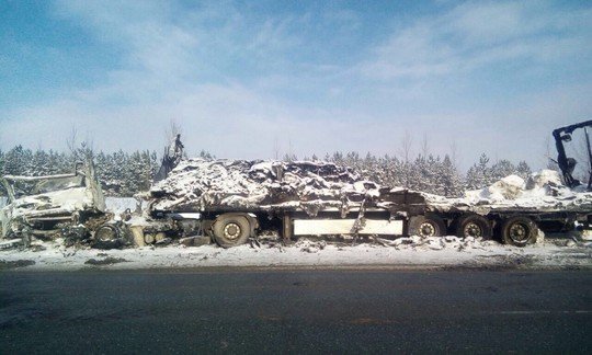 По предварительным данным, 30-летний водитель грузовика DAF из Башкирии превысил скорость и столкнулся со встречным большегрузом MAN из Москвы. Затем грузовик по касательной задел ВАЗ-2115. После происшествия обе фуры загорелись.