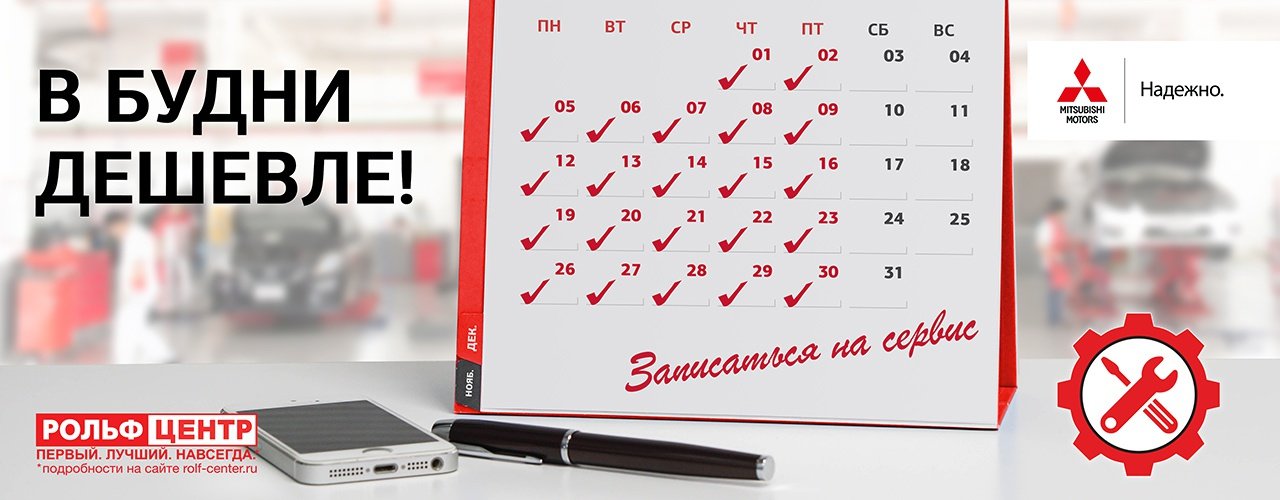 С заботой о Вас и Вашем автомобиле предлагаем пройти сервисное обслуживание Вашего Mitsubishi в будние дни в РОЛЬФ Центр! По многочисленным просьбам акция продлена до 31 марта 2017 года.