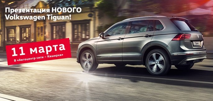 Официальный дилер Volkswagen «Автоцентр Сити — Каширка» имеет честь пригласить вас на презентацию НОВОГО Volkswagen Tiguan 11 марта в 11:00.