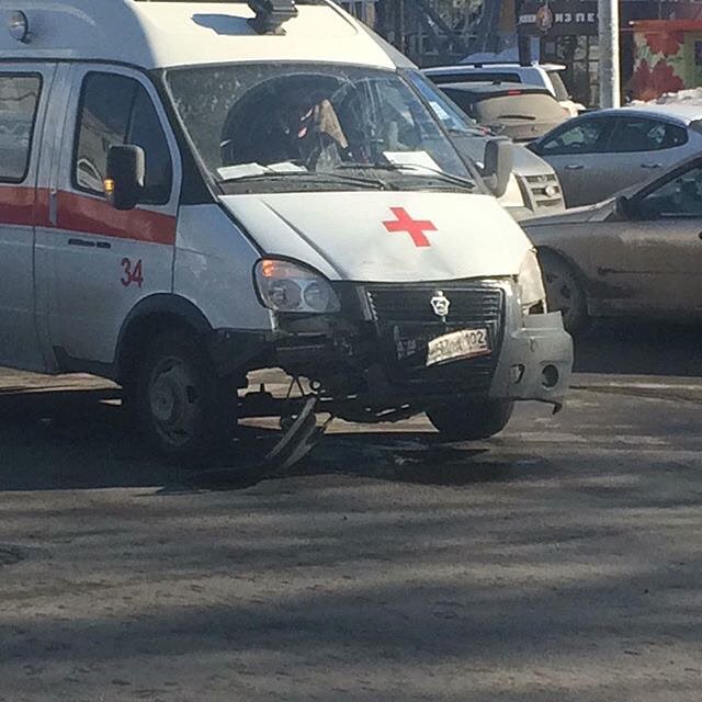 Авария с участием машины «скорой помощи» произошла днем 20 марта на перекрестке улиц Ленина и Революционной в Уфе.