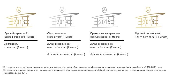 Рады сообщить Вам, что по итогам исследования удовлетворенности клиентов уровнем обслуживания на официальных сервисных станциях «Мерседес-Бенц» в 2016 году, дилерский центр «МБ-Измайлово» удостоен высшей награды – «Лучший сервисный центр «Мерседес-Бенц» в России»!