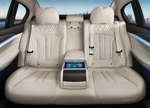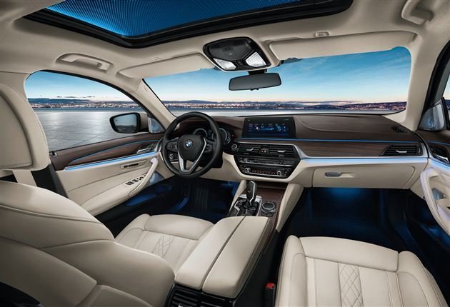 Колесная база BMW 5-Series Li увеличена с 2 975 до 3 108 мм, а длина — с 4 936 до 5 087 мм. Благодаря этому пассажиры с задних сидений смогут почувствовать себя еще более комфортно. Внутри седан отделан кожей Nappa и имеет два 10,2-дюймовых мультимедийных экрана для задних пассажиров и подлокотник с сенсорным дисплеем.