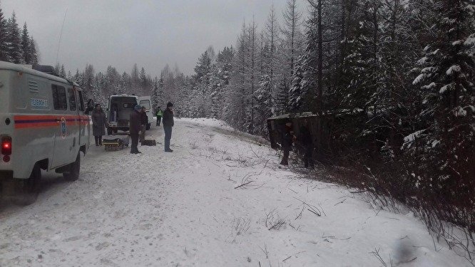 По предварительным данным, водитель автобуса не справился с управлением на затяжном повороте, в результате автобус съехал с дороги и опрокинулся. Так же отмечается, что в этот момент шел снег и наблюдался гололед на дороге.