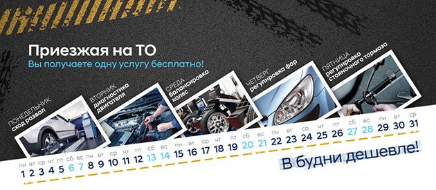 Приезжая на техническое обслуживание с понедельника по пятницу, Вы получаете одну услугу бесплатно!