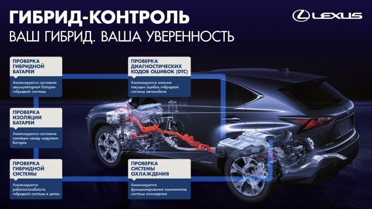 В рамках программы Lexus «Гибрид-Контроль» в гибридной системе вашего автомобиля Lexus будут протестированы: