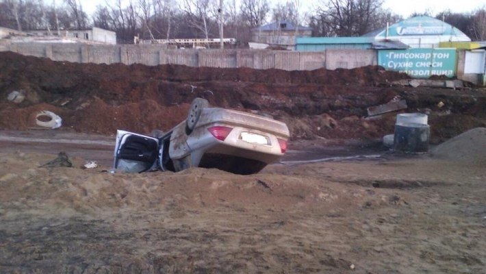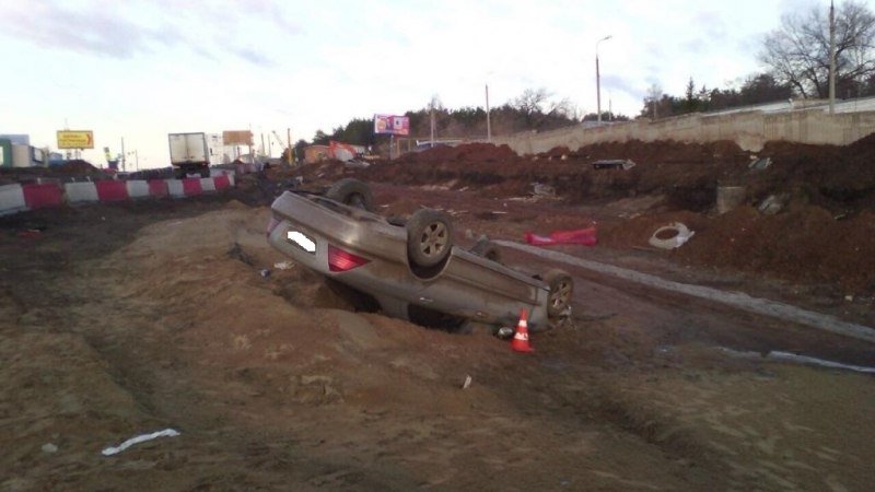 В Самаре водитель Mercedes «бортанул» Hyundai , выехал на ремонтируемую дорогу и перевернулся