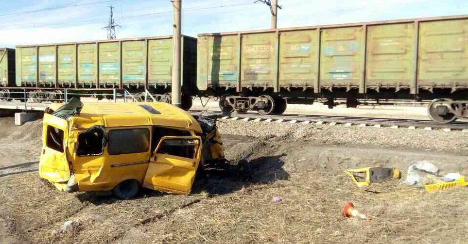 По предварительным данным, водитель микроавтобуса проигнорировал запрещающий сигнал светофора и выехал на переезд.