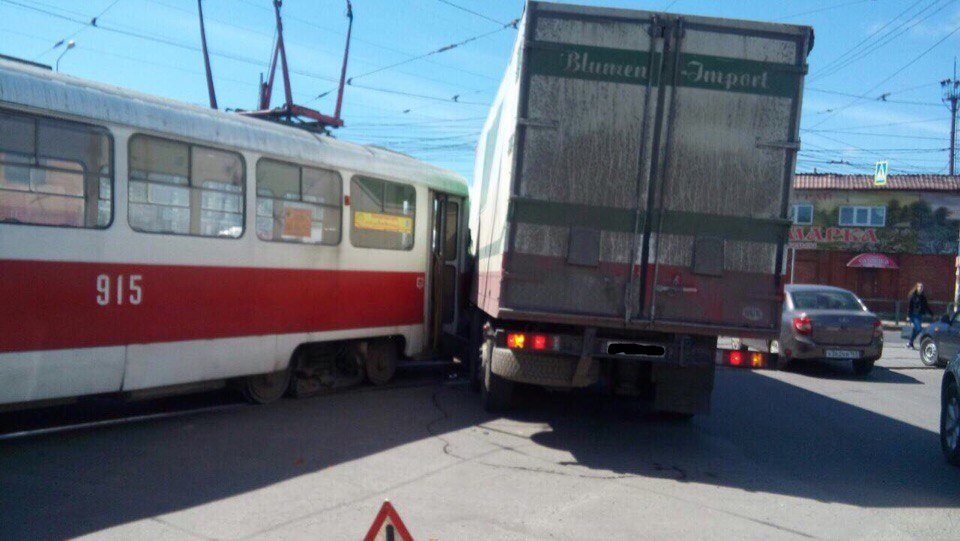 В Самаре грузовик снес трамвай с рельсов