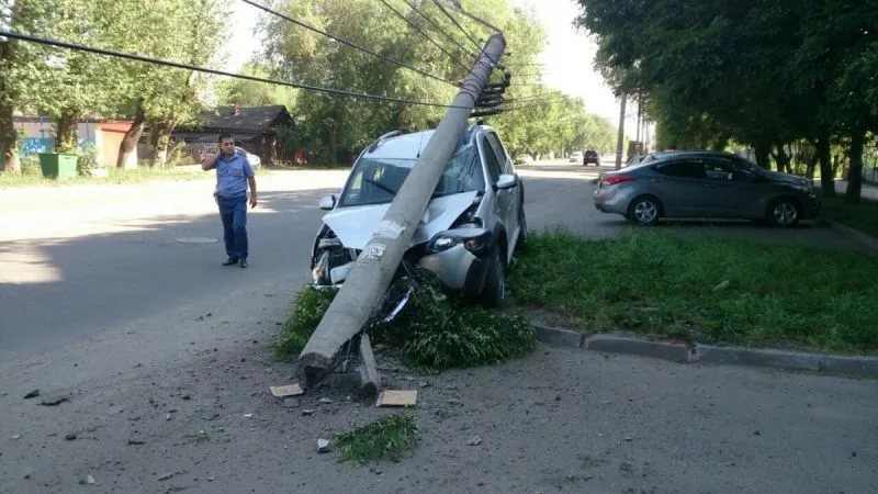 Сообщается, что на дороге, ведущей к одному из заводов в окрестностях города, легковой автомобиль на полном ходу врезался в световую опору, которая затем упала на машину.