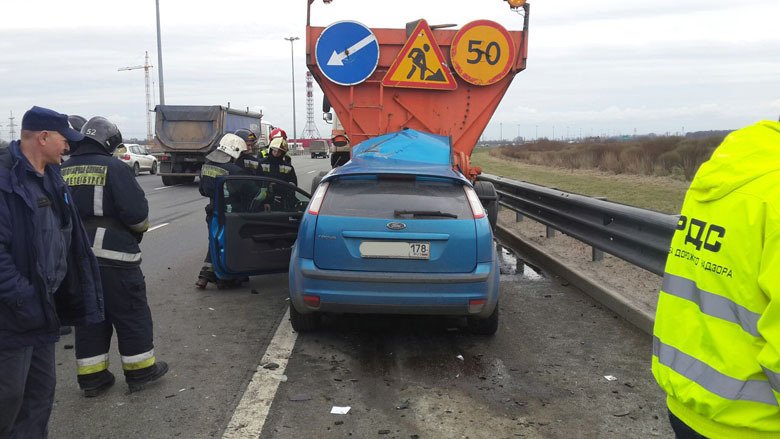 Смертельная авария произошла днем 15 мая около 14:50 на КАД на участке между Шафировским и Пискаревским проспектами. При столкновении легковушки и грузовика погиб человек.