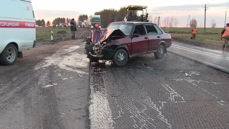 Сообщается, что 33-летний водитель автомобиля ВАЗ-21099, не имеющий прав, врезался в асфальтоукладочный каток марки «Раскат», за рулем которого находился 42-летний мужчина.