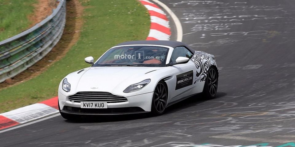 В Сеть выложили фото обновленного спорткара Aston Martin DB11 Volante, проходящего дорожные испытания на трассе Нюрбургринга.