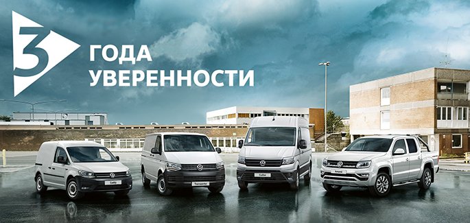 Приобретая коммерческий автомобиль Volkswagen, вы получаете автомобиль, оснащённый самой современной техникой и множеством дополнительных программ, которыми вы непременно захотите воспользоваться. Поставщик, в частности марка Volkswagen Коммерческие автомобили, заинтересован в предоставлении своим Клиентам услуг, аналогичных европейским стандартам. В связи с этим с 15 апреля 2017 года Поставщик осуществляет поддержку по программе «3 Года Уверенности*» Постгарантийная поддержка для владельцев коммерческих автомобилей марки Volkswagen в России.
