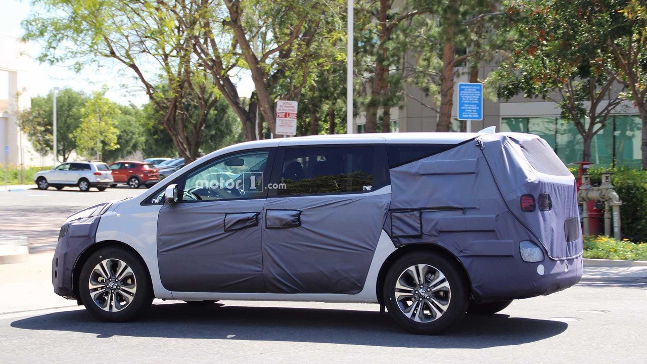 В Сеть выложили фотографии закамуфлированного обновленного минивэна KIA Sedona, проходящего дорожные испытания в Калифорнии.