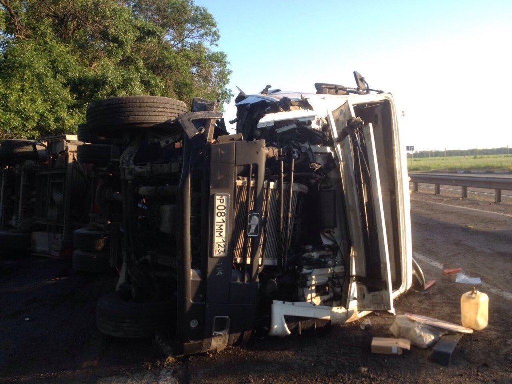 Авария произошла утром 30 мая около 04:30 в районе поселка Большевик в Новокубанском районе. При столкновении бензовоза и грузовика дорогу залило топливом.