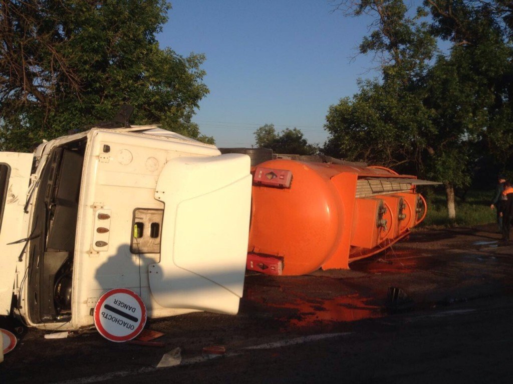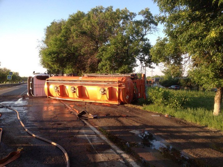 В Новокубанском районе в ДТП опрокинулся бензовоз