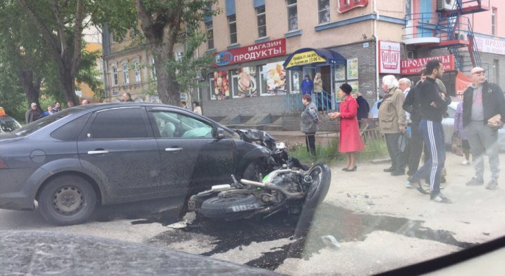 По предварительным данным, при повороте автомобиля Ford Focus во двор в него на высокой скорости врезался мотоцикл.
