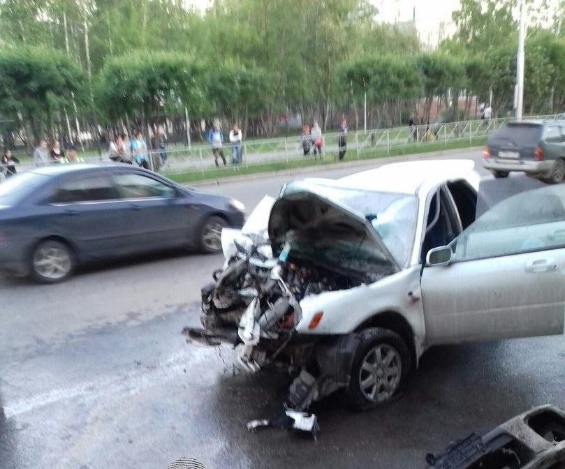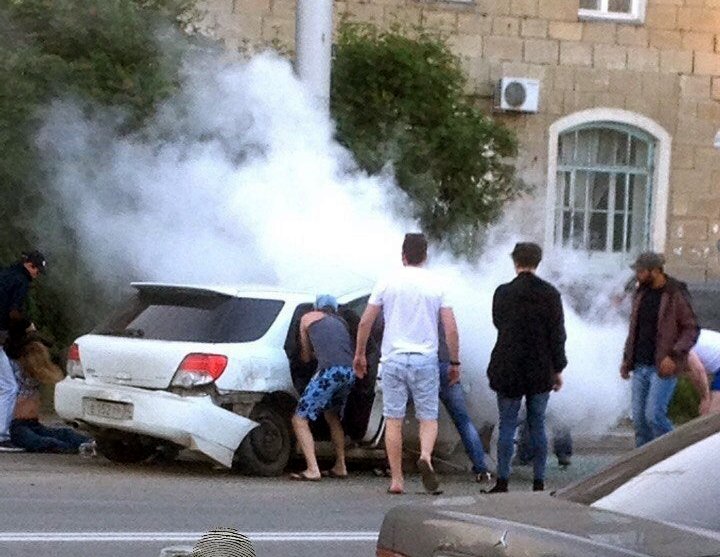 Сообщается, что автомобиль Subaru Impreza, в котором находились шесть человек, на большой скорости врезался в столб. По словам очевидцев, после столкновения под иномаркой загорелось масло, но пожар удалось быстро потушить.