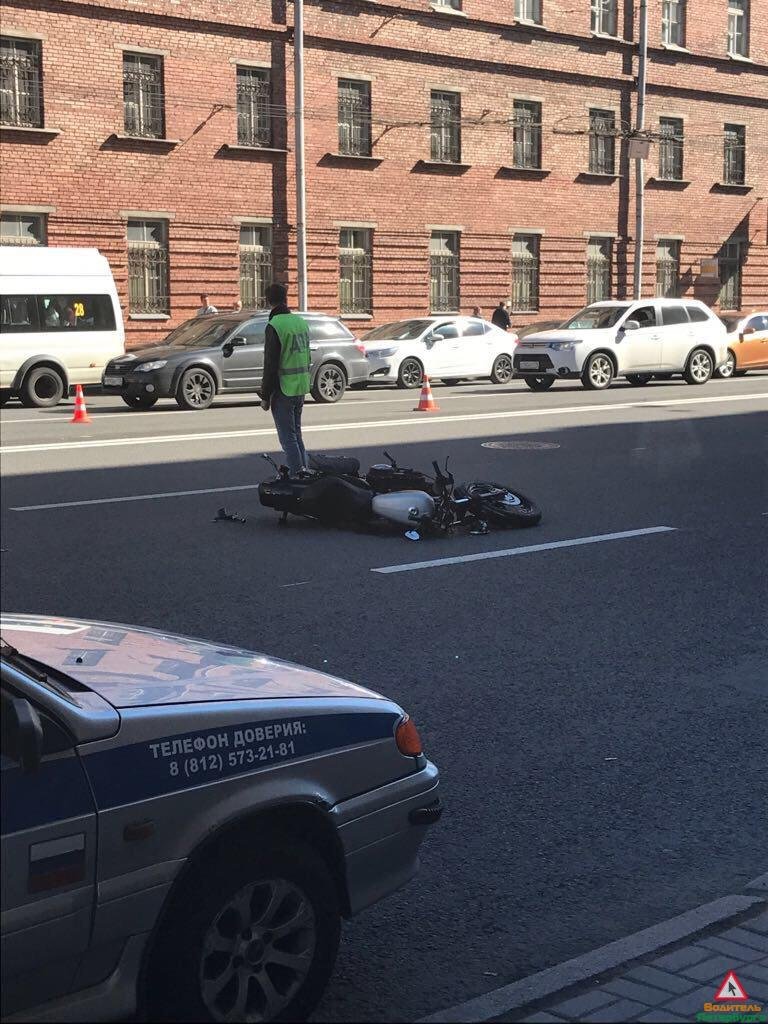 Серьезная авария произошла 6 июня в 15:20 у дома 56 по Суворовскому проспекту в Центральном районе Петербурга. В массовом ДТП пострадал мотоциклист.