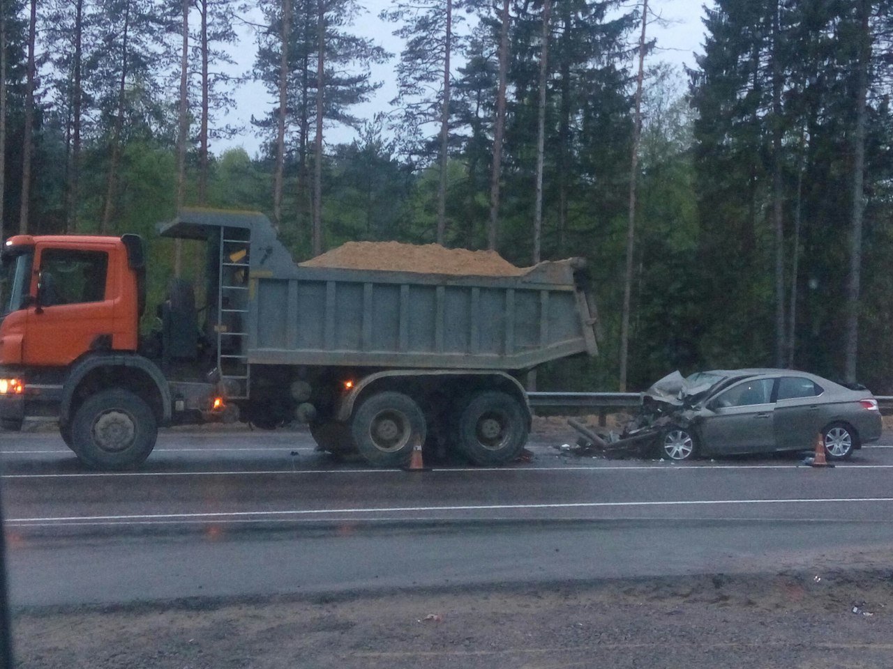 Женщина погибла при столкновении легковушки и самосвала ночью 6 июня около 01:20 на 60-м километре трассы «Скандинавия» в Выборгском районе Ленобласти.