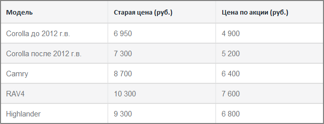 До конца июня в Тойота Центр Ясенево действует специальное предложение на замену передних тормозных колодок (включая все необходимые запасные части, работы и расходные материалы):