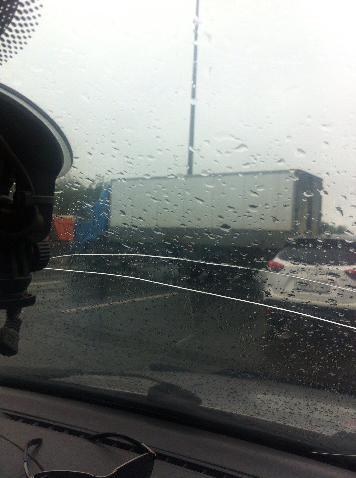 По сообщениям очевидцев, грузовик перегородил три полосы КАДа.