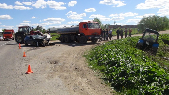 Смертельная авария произошла сегодня, 9 июня, в третьем часу дня на 44-м км автодороги Вологда – Ростилово в Грязовецком районе Вологодской области. При столкновении иномарки и трактора погиб человек.