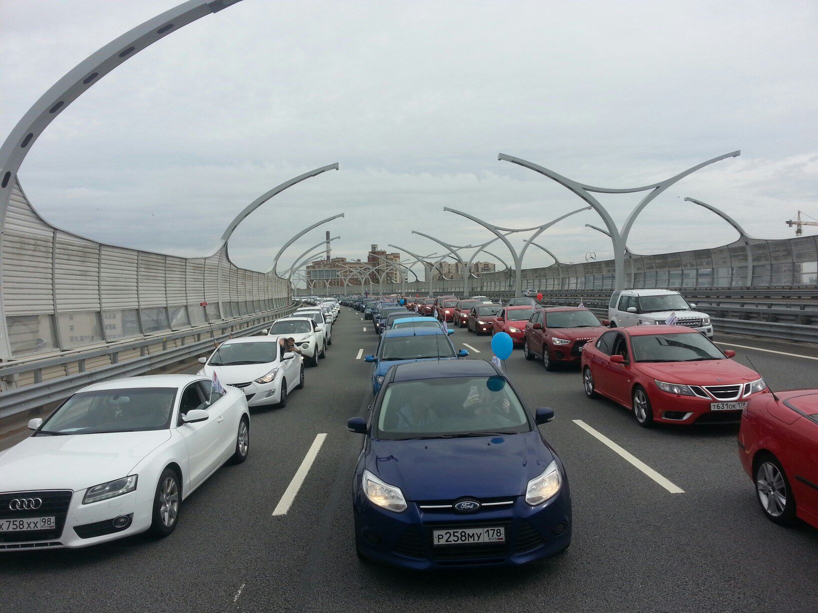 Длина созданного таким образом «флага» составила 400 метров. Автоколонна проехала по ЗСД мимо нового стадиона на Крестовском острове. По отзывам в соцсетях, флешмоб не создал никаких проблем обычным автовладельцам, ехавшим в это де время по ЗСД. Как пишут очевидцы, проезжавшие мимо автомобили приветствовали участников акции звуковыми сигналами, время акции было выбрано такое, что дорога была практически свободна.