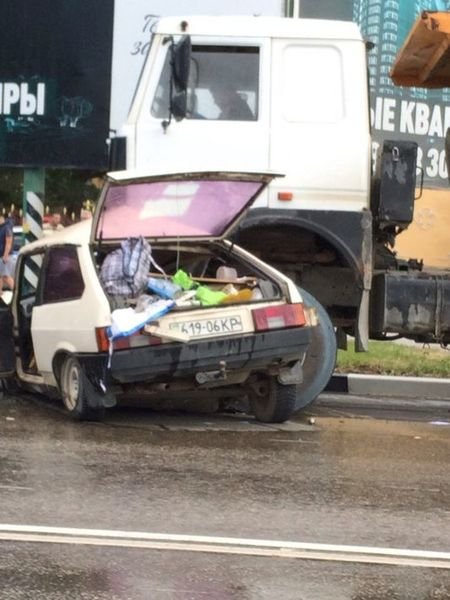 Серьезная авария произошла сегодня, 15 июня, в 10.45 на автодороге «Обход Восточный» Симферополя. Грузовик раздавил легковой автомобиль.