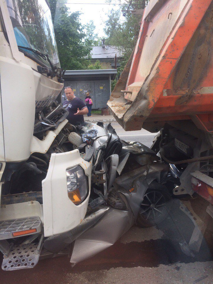 В Кузьмолово в ДТП легковушку раздавило грузовиками