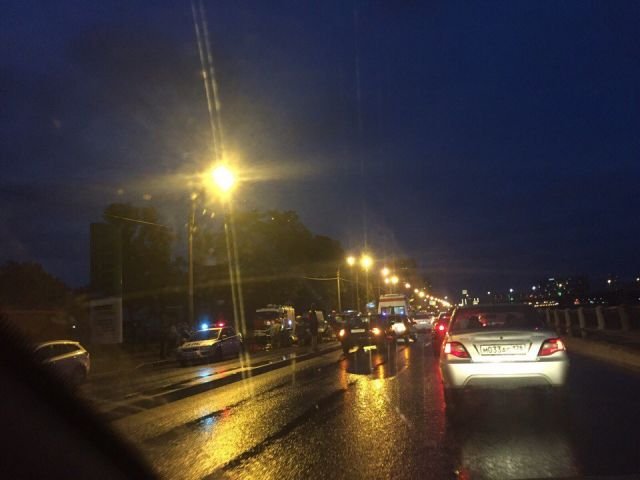 «Только что проехала, вид жуткий - раскуроченное железо... Набережная прочно встала в сторону центра. Из центра проезд в правом ряду, левый занят машиной скорой помощи + ещё несколько машин на аварийке».