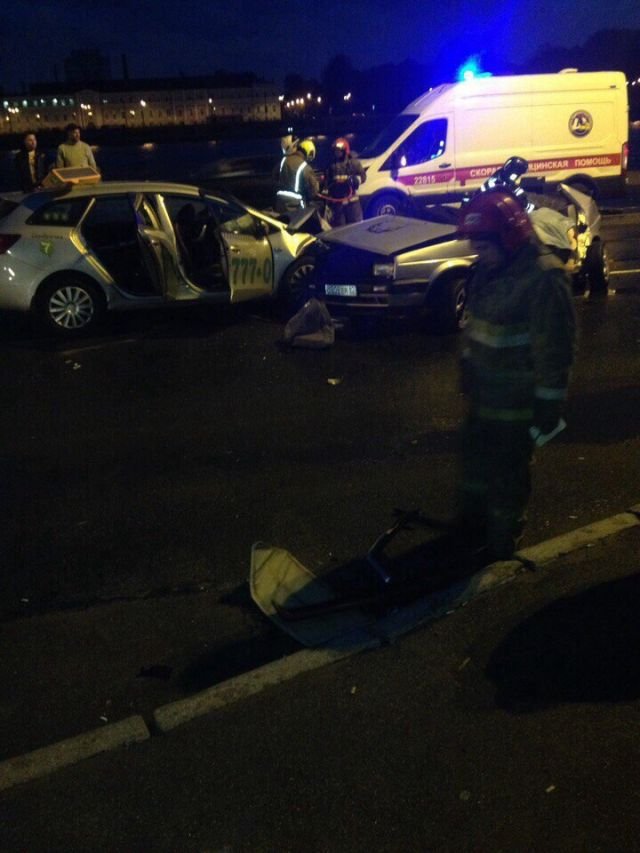 «Страшная авария с такси на Октябрьской набережной. Две машины всмятку. Набережная перекрыта в сторону севера».