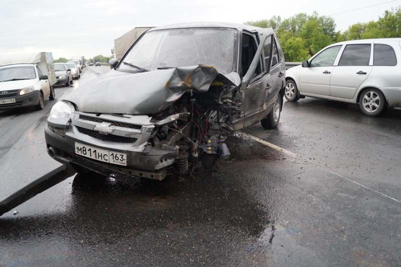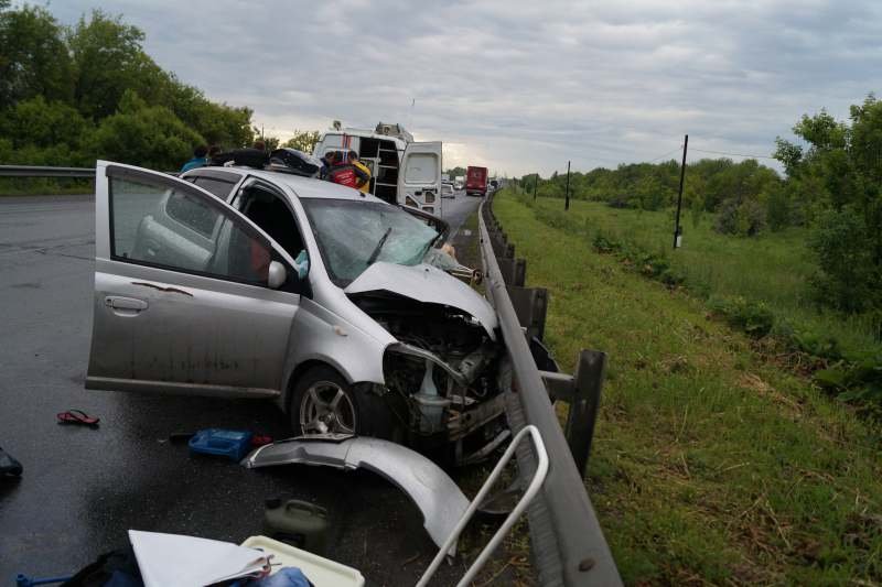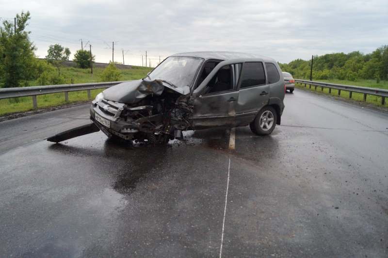 На дороге столкнулись встречные автомобили Chevrolet Niva и Toyota Vitz. По предварительным данным, причиной стал выезд водителя «Нивы» на полосу встречного движения. От удара Toyota отбросило в отбойник, а «Ниву» развернуло на дороге.