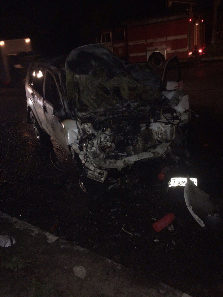 В результате ДТП иномарка загорелась. Водитель с серьезными травмами был госпитализирован, но позже скончался в больнице.