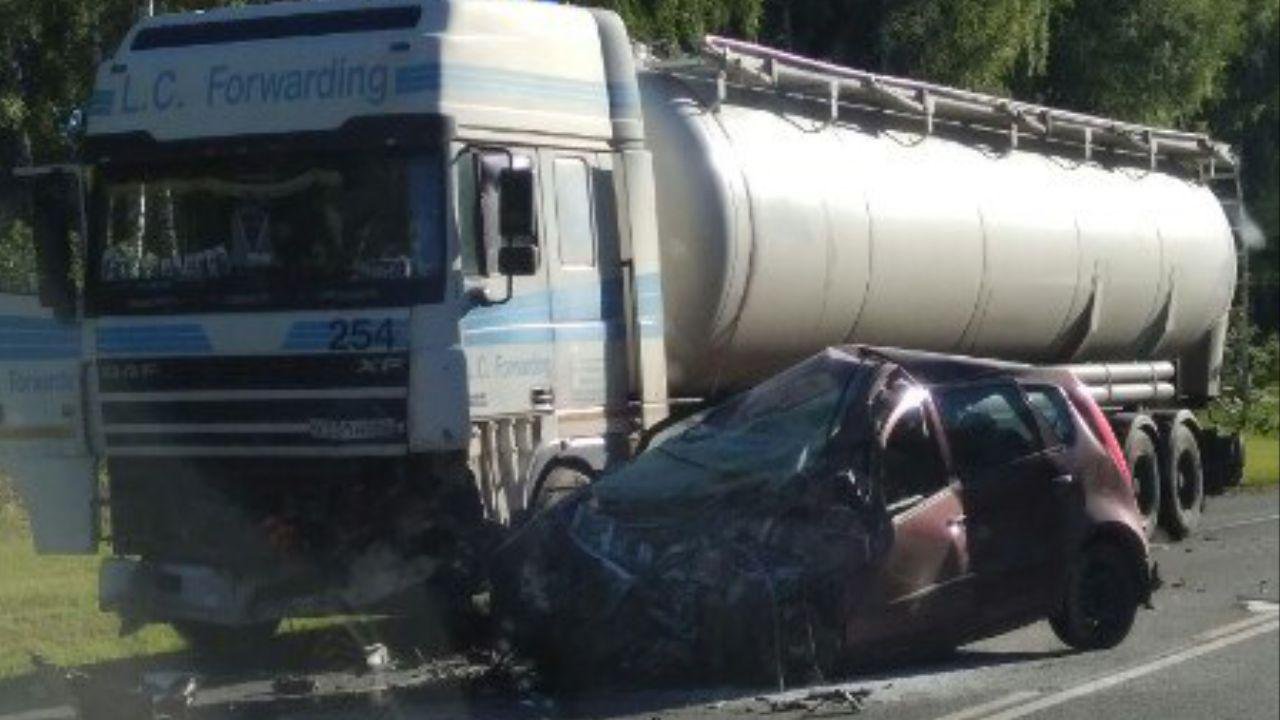 По имеющимся данным, 64-летняя женщина-водитель автомобиля Mitsubishi Colt не справилась с управлением и выехала на полосу встречного движения, где врезалась в грузовик DAF.