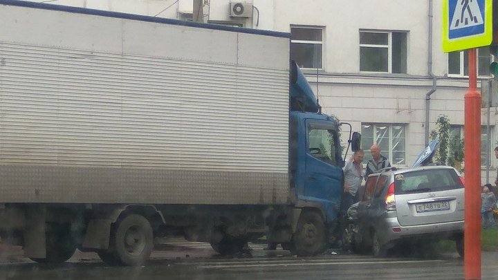 Авария произошла сегодня, 11 июля, около 05:40 на проспекте Калинина в Барнауле. При столкновении грузовика и легковушки ребенок получил травмы.