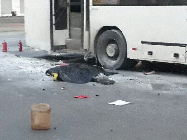 По предварительным данным, маршрутный автобус №32 при повороте налево с Шахтеров столкнулся со встречным мотоциклом. Сначала загорелся мотоцикл, а затем и автобус.