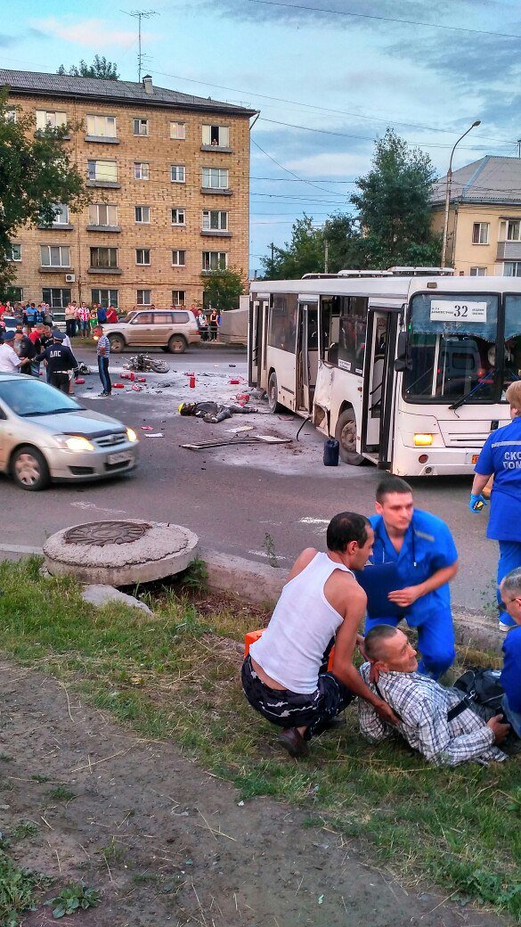 Мотоциклист погиб в ДТП с горящим автобусом в Красноярске